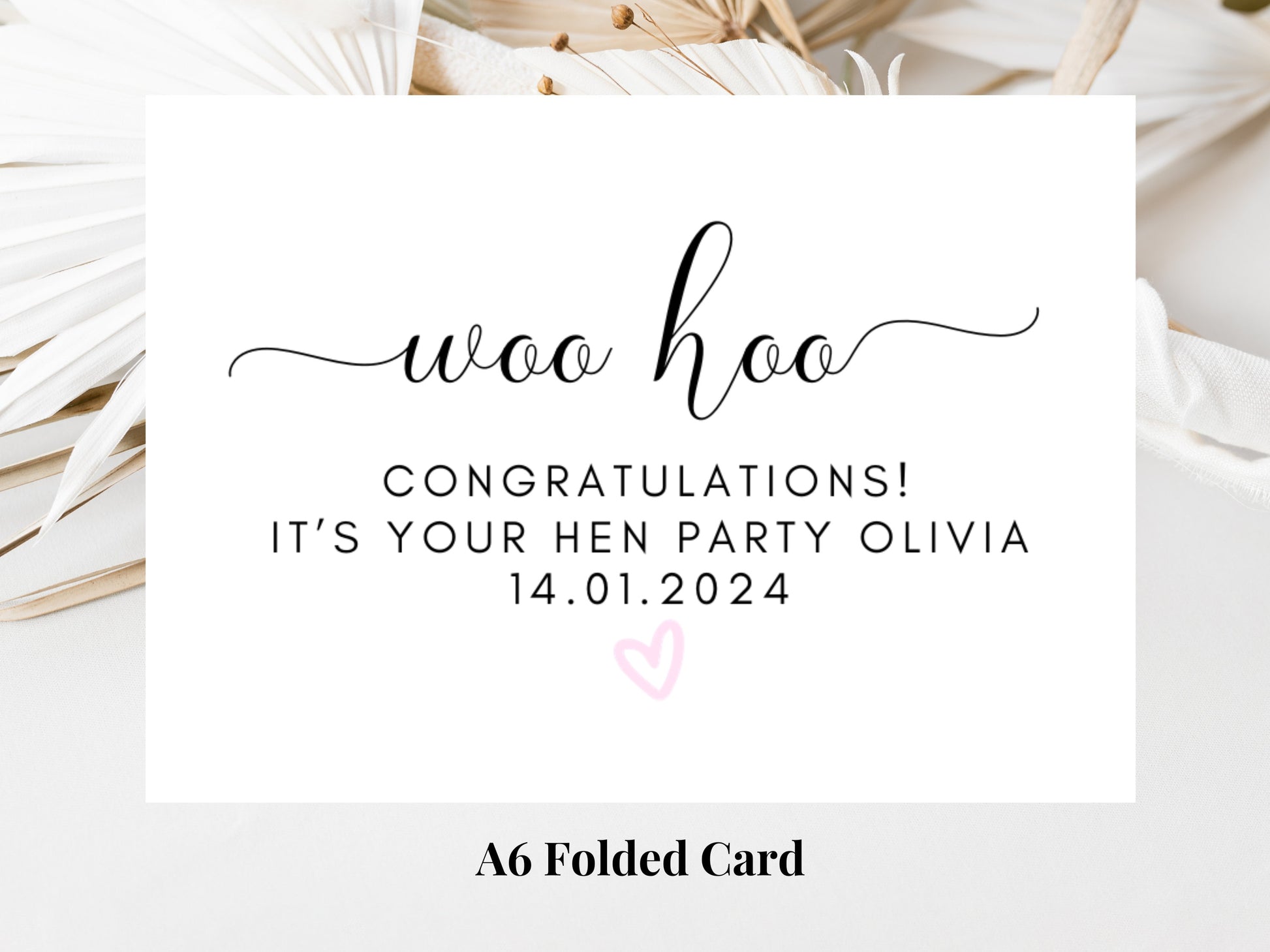 Woo Hoo Congratulations its Your Hen Party Card/ Personalised Bride to Be Bridal Shower/ Bachelorette Boho Pink Heart Hen Party Weekend Card