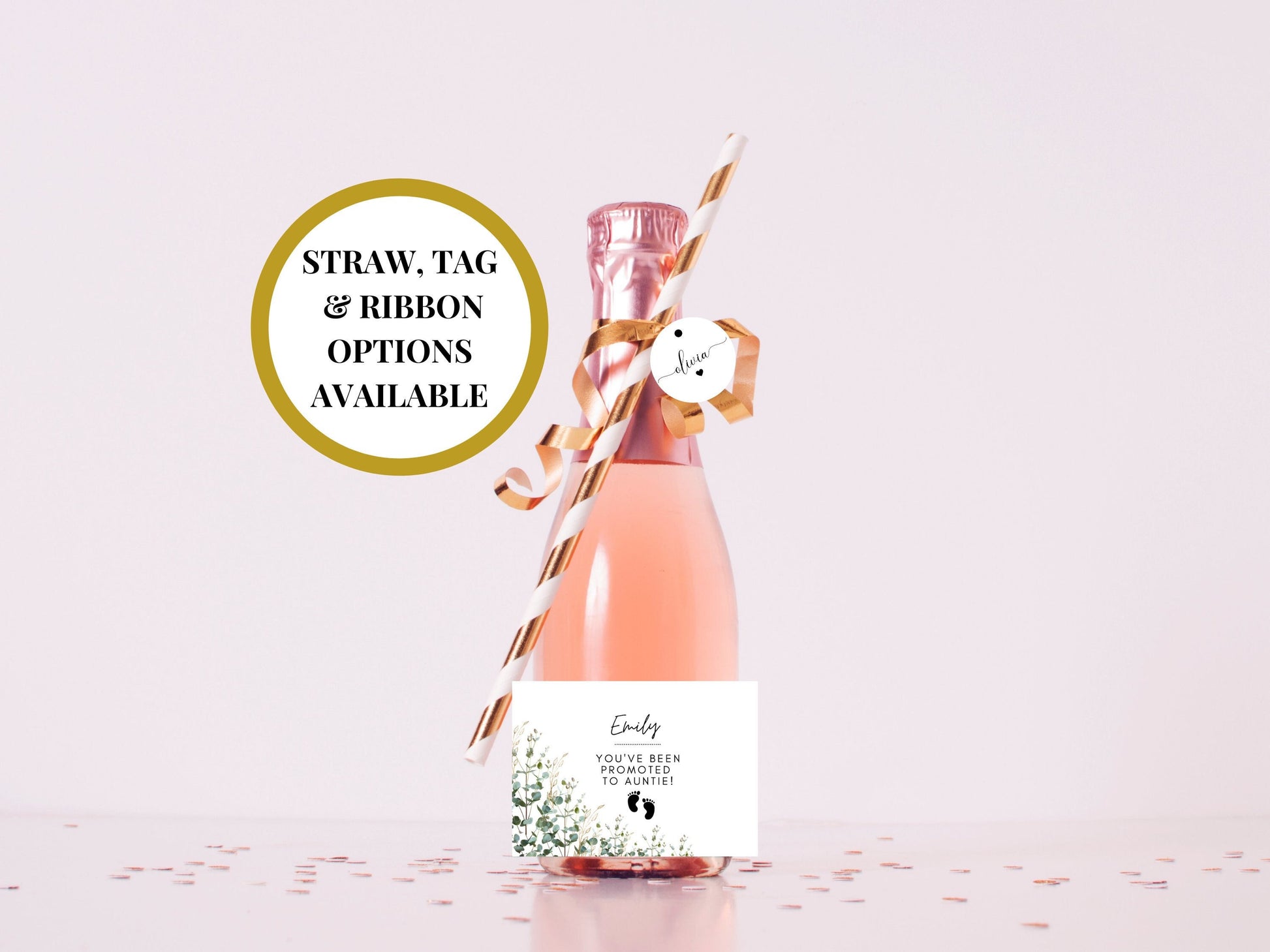 The straw which can be secured to the bottle using ribbon of your choice is available in Pink and White Stripe, Silver, Holographic/ Rainbow, Rose Gold, Red and White, Gold.