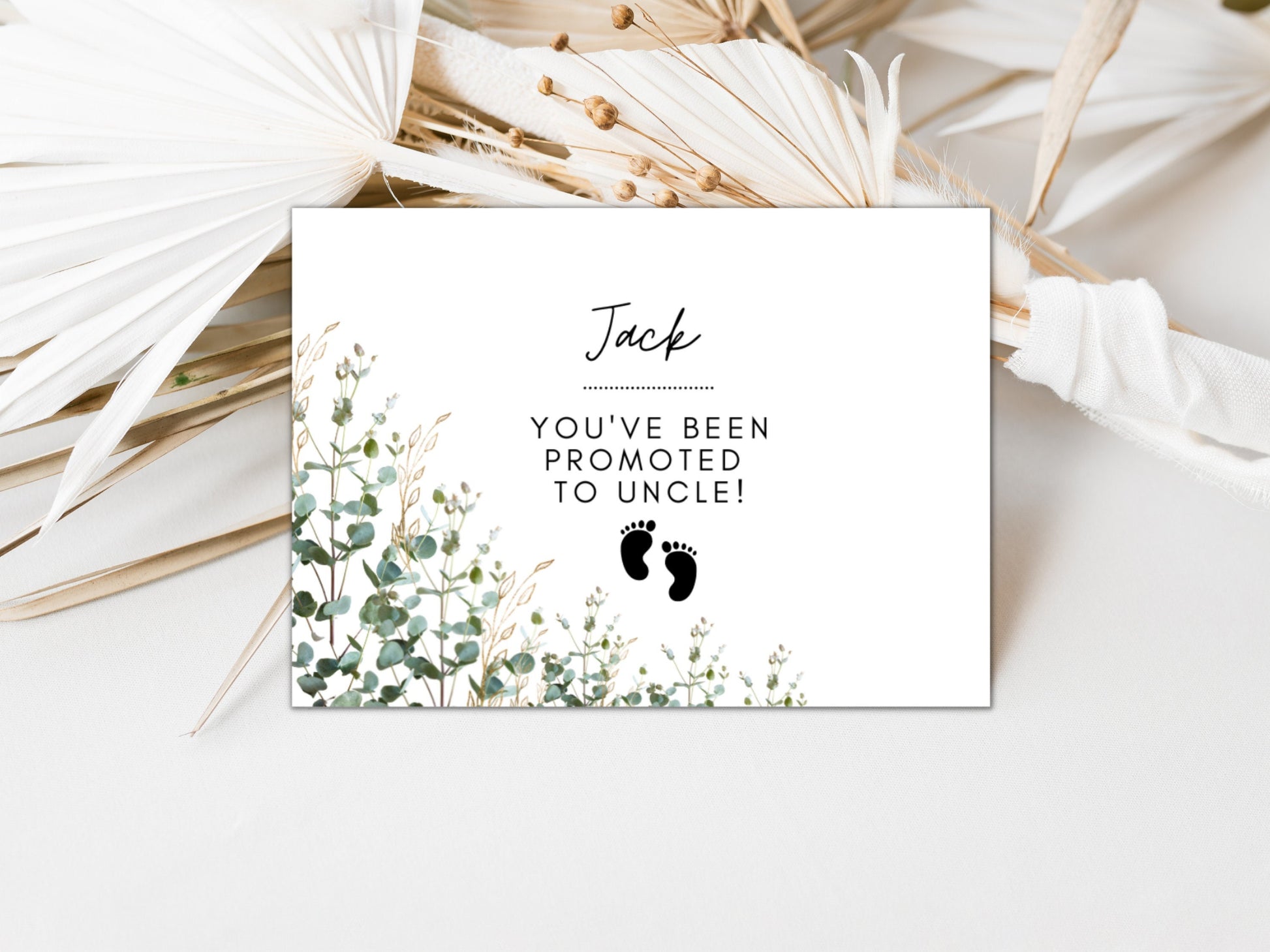 You've Been Promoted to Uncle! Baby Coming Soon/ Surprise! We're having A Baby Announcement/ Gender Reveal Card/ Pregnancy Reveal.